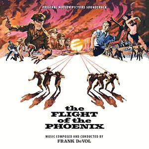 DeVol’s primary melodic idea is a sweeping theme tinged with desert color, rising upwards then winding about. Other melodies also make an impression, including a dignified line for Stewart’s pilot, tortured as he is for crashing his aircraft. There is also haunting use of a song, “Senza Fine” by Italian singer-songwriter Gino Paoli, (“Without End”), repurposed by DeVol for several dramatic sequences as well as heard in the composer’s arrangement for American singer Connie Francis with new lyrics by Alec Wilder. Not merely source music, it factors into one character’s tragic storyline. The crash survivors, tired, wounded and in despair, summon the strength to rebuild the broken aircraft and fly to safety holding onto the remaining wing with one propeller. Several powerful cues play for the tension and struggle to work this miracle of courage and stamina. Spotlights definitely go to the climactic sequences where DeVol creates music of mounting power and strength, beginning with the massive pulling of the “Phoenix” into takeoff position, bringing the engine up to speed, mounting the wing itself and ultimately scoring the thrilling lift-off. It’s simultaneously gripping and exhilarating music!