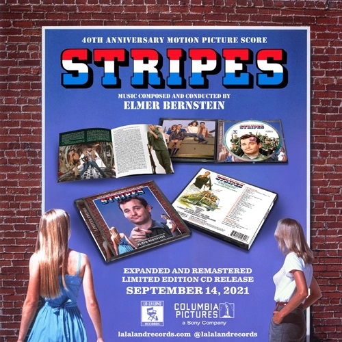 La-La Land Records and Columbia Pictures proudly present a limited edition expanded and remastered release of legendary composer Elmer Bernstein’s (THE MAGNIFICENT SEVEN, THE SONS OF KATIE ELDER, GHOSTBUSTERS) original motion picture score to the 1981 big-screen comedy classic, STRIPES, starring Bill Murray, Harold Ramis and Warren Oates, and directed by Ivan Reitman. Bernstein expertly melds robust military and heroic motifs with blues-and-jazz infused comedy riffs to create one of the most iconic scores to one of the most popular ‘80s era comedies.
